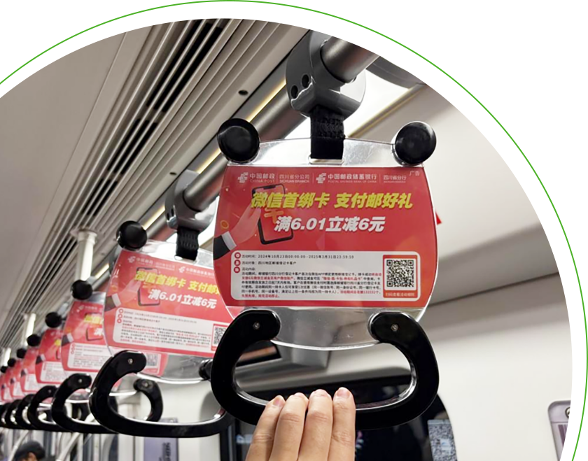 每个拉手支持双面展示,无论乘客从车厢左侧或右侧观看,均能看到完整广告内容,进一步扩大信息覆盖范围